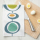 Add a pop of color to your mid-century kitchen with this adorable retro kitchen towel. It features the bright and bold colors of turquoise, blue, orange, gold and tan.