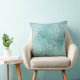 Stamped Flowers Teal Background Throw Pillow