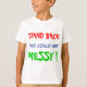 Stand Back This Could Get Messy - a child's t-shirt for messing around in the kitchen, or with crafts. It has bright red, blue and green crazy lettering. This example is white, but you can choose from a variety of colours and styles.