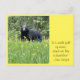 Postcard with an image of a black bear in a field of dandelions on a yellow background with the saying, "In a world full of roses, stand out like a dandelion" on the front.