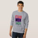 This sweatshirt is super comfortable. The colors are exactly what I expected and the writing blends in nicely. The quality is better than I expected though. The printing came nicely; I get compliments on it all the time. I use the shirt for marketing and it does the job :).