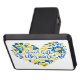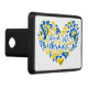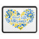 Folk art illustration heart and lettering in Ukrainian flag colors and ethnical pattern