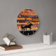 Standardbred Trotting Racehorse At Sunset, Wall Clock. Digital Art. Silhouette of standardbred horse and driver jog at sunset. Fully customizable; make it your own.