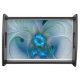 Standing Ovations, Abstract Blue Turquoise Fractal Serving Tray