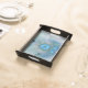This is a well made, sturdy wooden tray with a flawless black finish and lovely map on the tray surface. It is both vintage & modern at the same time. Looks exactly like the photo; does not disappoint. So nice to find something of quality individually made and not the mass-produced 'shabby chic' merchandise seen in stores. I am so pleased to be able to give this to my college-age niece for her birthday. This can be used as a tray to hold jewelry or toiletries, or hung on the wall as art. The map surface is sealed (it is slightly shiny) so would be moisture resistant. It is well worth the asking price but I was able to apply a sale code as well. Very happy with my purchase. Map is crisp & clear and sealed with a water-resitant finish.