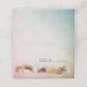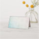 Seashells place cards with optional "table number" text. Standing cards have a seashell border and pink to blue graphic fade background. Use the table number text for escort cards. These will direct guests to their table. Hand write name, or names on the front. Remove the "table no." wording to use as place cards. Underneath the color is solid sand tan. This design matches the Living Seas wedding collection.