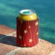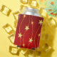 Simple and festive pattern of red and gold. Wavy lines with different shaped gold stars across a red gradient background. A cute design for the winter holiday time.