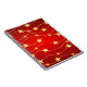 Simple and festive pattern of red and gold. Wavy lines with different shaped gold stars across a red gradient background. A cute design for the winter holiday time.