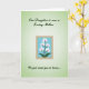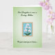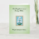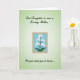 This greeting card features a soft green gradient background that shifts from light lime near the bottom to pale mint at the top, creating a calm, springlike setting 🌼. In the center sits a slightly blurred, framed botanical picture, like a cherished photo viewed through a gentle haze. Inside the frame is a leafy plant with several white, star-shaped flowers, each with a small pink center, set against a light sky-blue backdrop, and bordered by a muted brown edge. Across the top, dark green flowing lettering reads, “Our Daughter is now a Loving Mother,” placed prominently with plenty of open space around it. Near the lower portion, a smaller line in the same dark green style says, “We just want you to know...,” adding a quiet, close-to-the-heart tone ❤️. The soft blur and tender color pairing give the flowers a dreamy, affectionate feel, like family love being passed along in a gentle glance. The floral artwork sits centered within its brown frame, with the white petals and pink centers softly glowing against the blue background.
