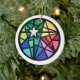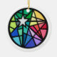 One bright star; hidden promise, stained glass sky. This bright design, originally made in hand cut paper, will look beautiful on your tree at Christmas or in your home year-round. Makes a lovely gift by itself or as part of a mixed or matched set.