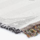 A quality printed throw has its advantages. This is a much finer weave throw than its loopier cousins, and though lighter, it is worth the investment for custom room accessorizing. The back is much prettier than the typical brown, and the fringe on the long sides very vivid, the selvage nicely done. Before photographing, I washed the throw in cold water, delicate, with a thicker woven throw the same size. On tumble dry low, this throw was dry in half the time as the other. This is a very practical quality if you use throws for furniture covers or to wrap up in frequently. The sleekness of the fabric makes it a great layer for accenting or protecting without the feeling of sitting on too much stuff. Perfect for napping or when you feel a light chill coming on. The color printing is beautiful and on this fabric, matched the design and color of my Photoshop image. This is an advantage for blending room fabrics and colors. The fringe on the short sides prints the colors from the design image and therefore varies from the side fringe. I streaked a white fractal line through the plaid pattern to give the illusion of weaving. This printed as crisp as an illusory thread, and put some white in the short side fringe, showing another advantage of print vs loomed- for artistic purposes, line lines, detail, and color integrity can be planned and preserved. My loomed throws have color limitations and more of a needlepoint texture. Print throws reproduce an exact image. The throw felt a little stiff straight out of the package, but this went away in the first delicate wash. Of course I searched the wash water for ink or bleeding and there was none.