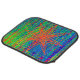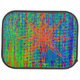 An abstract rich with texture is the background for a star. Colors include lime green, red, orange, blue, turquoise and yellow.