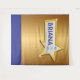 Arrived quickly and looked great! Had to steam out the wrinkles from shipping but it was easy to do! I added gold curtains to the sides to extend the photo backdrop area. I changed the color to royal blue! Perfect! The printing looked just like the photo online! Excellent job!