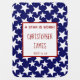 Personalized blanket for the new baby. White stars on navy blanket. Personalize with baby's name and birthday in crimson red. Other color combinations available. Contact the store if you don't see the colors that you want.