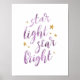 Star light star bright purple watercolor typography poster print features modern hand-lettered typography in purple watercolor and faux gold foil stars. Also comes in different colors. Look's great in a kids bedroom.