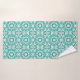 This bath towel set features a star mandala pattern in turquoise, aqua, blue, cream and white for a boho look.
