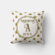 This monogram pillow is a great way to create a memorable keepsake for a special couple. A gold star pattern appears against a white background. Your monogram is featured in a center circle in a golden yellow color along with the family name and year of marriage. Easily customize the colors and monogram initial to suit your desire.