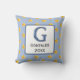 This monogram pillow is a great way to add a modern touch to your home or makes a special keepsake for a wedding or housewarming. A bright yellow star pattern appears against a light blue background on both the front and back of this pillow. Your monogram is featured in a square along with the family name and year. The letter on this simple minimalist design can not be personalized. If you are looking for another letter, please visit our store and check out our collections.