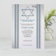 Plain white envelopes are included with paper invitations and will come to fit the invitation size you select. If you don’t need the envelopes, you may choose to not receive them by selecting the dropdown below "Envelopes" and choosing "None." If you’d like to have a design on your envelopes, you can browse all of these available envelopes to find the design that complements your Star Of David Bar Mitzvah Invitation.