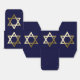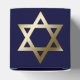 Gold Star of David on navy blue background.