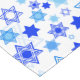 Dress up your holiday table with this design that features the Star of David in a variety of designs and shades of blue.
