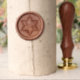 Before the wax hardens, gently and evenly press the wax seal stamp into the melted wax, ensuring it's centered.