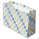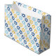 This fabulous gift bag would be perfect for any gift you are giving at Hanukkah. It's cool traditional diagonal Star of David design with blues and yellow is clean and simple, festive and fun! Get enough to wrap all your gifts.