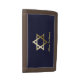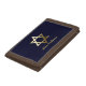 Gold Star of David on navy blue background with a gold, monogram, template created for you underneath.