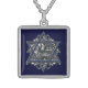 Elegant Star of David with traditional blue and white hexagram symbol complimented with an ornate baroque flourish of silver background. Art of Margaret Loftin Whiting.