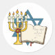 This design is the star of david. The star has a candle holder in front of it and a book with a passage. This star of david design looks great on this Stickers