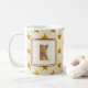 This monogram mug is a great way to start your morning with a cup of tea or coffee. A star pattern appears against a beige background. The letter "K" features a patchwork country pattern. The initial can not be customized. If you are looking for a different letter, please visit our store to find options for your desired monogram.