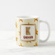 This monogram mug is a great way to start your morning with a cup of tea or coffee. A star pattern appears against a beige background. The letter "K" features a patchwork country pattern. The initial can not be customized however your name can quickly and easily be personalized. If you are looking for a different letter, please visit our store to find options for your desired monogram.