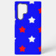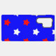 Do you like phone cases that have stars? This phone case has a pattern of red and white stars on a blue background.