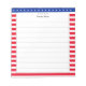 Star pattern and red white striped frame lined Notepad. Text can be personalized. Good for everyone! Aim for the stars!