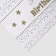 Decorative star print patterned tissue paper, the happy birthday text can be personalized to suit any special occasion, and the white background and stripe can be changed to any colour. all elements are removable.
