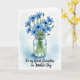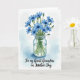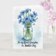 This card features a bouquet of rich blue, star-shaped flowers rising from a clear glass jar, arranged like a thoughtful gift shared between close friends ❤️. Slender green stems show through the water, and faint reflections on the glass add a gentle, intimate touch. A soft wash of pale blue surrounds the flowers, as if the scene is being held in a quiet, caring moment. Several blooms are fully open with darker centers, while a few buds stay curled, hinting at something slowly unfolding. The background stays bright white, making the blues and greens stand out without distraction. A short line of text sits below the jar in a flowing, dark gray style, centered and easy to notice 🌼. The pale blue framing brushstrokes remain light and airy around the edges of the bouquet.