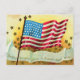 Beautiful vintage postcard of the American Flag with stars bursting around and the banner reading The Star Spangled Banner in Triumph Shall Wave.