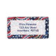 1.25” x 2.375” address label with an image of red, white, and blue star-spangled ribbons on folds of blue with white stars, and a white transparent rectangle with a customizable address. See matching confetti, round sticker, star-shaped sticker and wrapping paper. See the entire Independence Day Label collection under the OFFICE category in the HOLIDAYS section.
