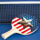 This patriotic ping pong paddle featuring the American flag with a large silver star in the middle would be make a perfect gift on 4th of July!