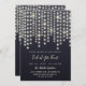 Beautiful dark blue eid al-fitr feast invitation with shining star-shaped string lights and a combination of elegant and charming fonts.