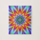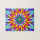 Digital abstract fractal image with a star flower design in blue, yellow, red, green and purple by Objowl. As well as puzzles this design is also available on most other products. If you need help or would like me to make changes to this or any other item email me. objowl at gmail.com. No obligation just pleased to be of service.
