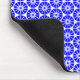 A mouse pad with an attractive pattern made up of a star or spoked wheel like motif.