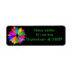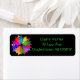 These return address labels have a mid-century modern design of a wreath made up of stars in shades of red, orange, yellow, green, blue, and purple.