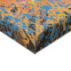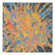 The painting features a predominantly black background that creates a stark contrast with the vibrant colors in the foreground. The central area of the painting showcases a large burst of orange paint, radiating outward in all directions, creating a sense of movement and energy. The orange burst is overlaid with numerous blue splatters of varying sizes, adding to the dynamic and energetic feel. There are also hints of other colors such as red, yellow, and pink interspersed within the orange burst, adding depth and complexity to the composition. The painting's chaotic yet harmonious arrangement of colors and splatters makes it visually striking and engaging. The combination of different colors and splatters creates a textured effect, adding to the overall visual interest. This piece is a captivating example of abstract art, using bold colors and dynamic patterns to create a sense of movement and energy. It draws the viewer's attention with its vibrant and energetic esthetic, inviting them to explore its intricate details.