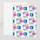 Reminiscent of Mid Century Modern designs from the 1950's and 1960's, this lively retro geometric pattern features teal, orange, green and pink abstract shapes along with purple starbursts and red linear elements. The background color may be easily customized.
