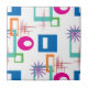 Reminiscent of Mid Century Modern designs from the 1950's and 1960's, this lively retro geometric pattern features teal, orange, green and pink abstract shapes along with purple starbursts and red linear elements. The background color may be easily customized.