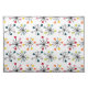 This cloth placemat has a mid-century modern design of starbursts scattered all over with circles on the end.