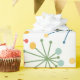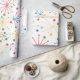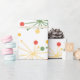 This wrapping paper has a mid-century modern design of starbursts in retro colors.