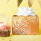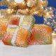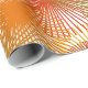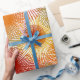 This wrapping paper has a Boho design of starbursts in gamboge (gold), red, berry, and green.