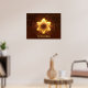 A bright, fire-like, fractal Star of David on a brownish background, resembling fire on iron. In the Shema, the central prayer of Judaism, we say, "And you shall love the Lord your God with all your heart and with all your soul and with all your might." May such emunah (trust, or faith) burn like fire in your heart. Customize by adding your own text.